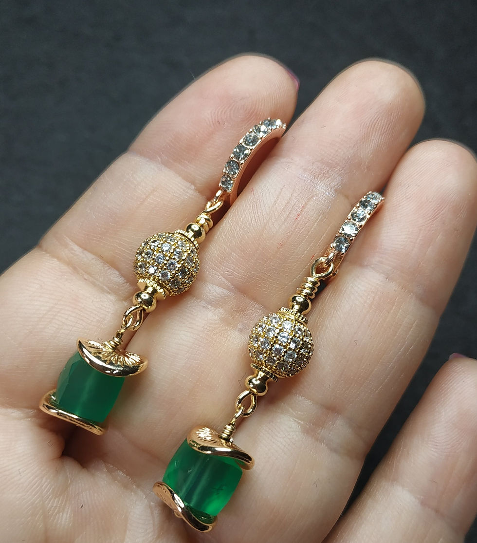 Natural Gem Green Onyx Earrings 14 K Gold Plated Brass