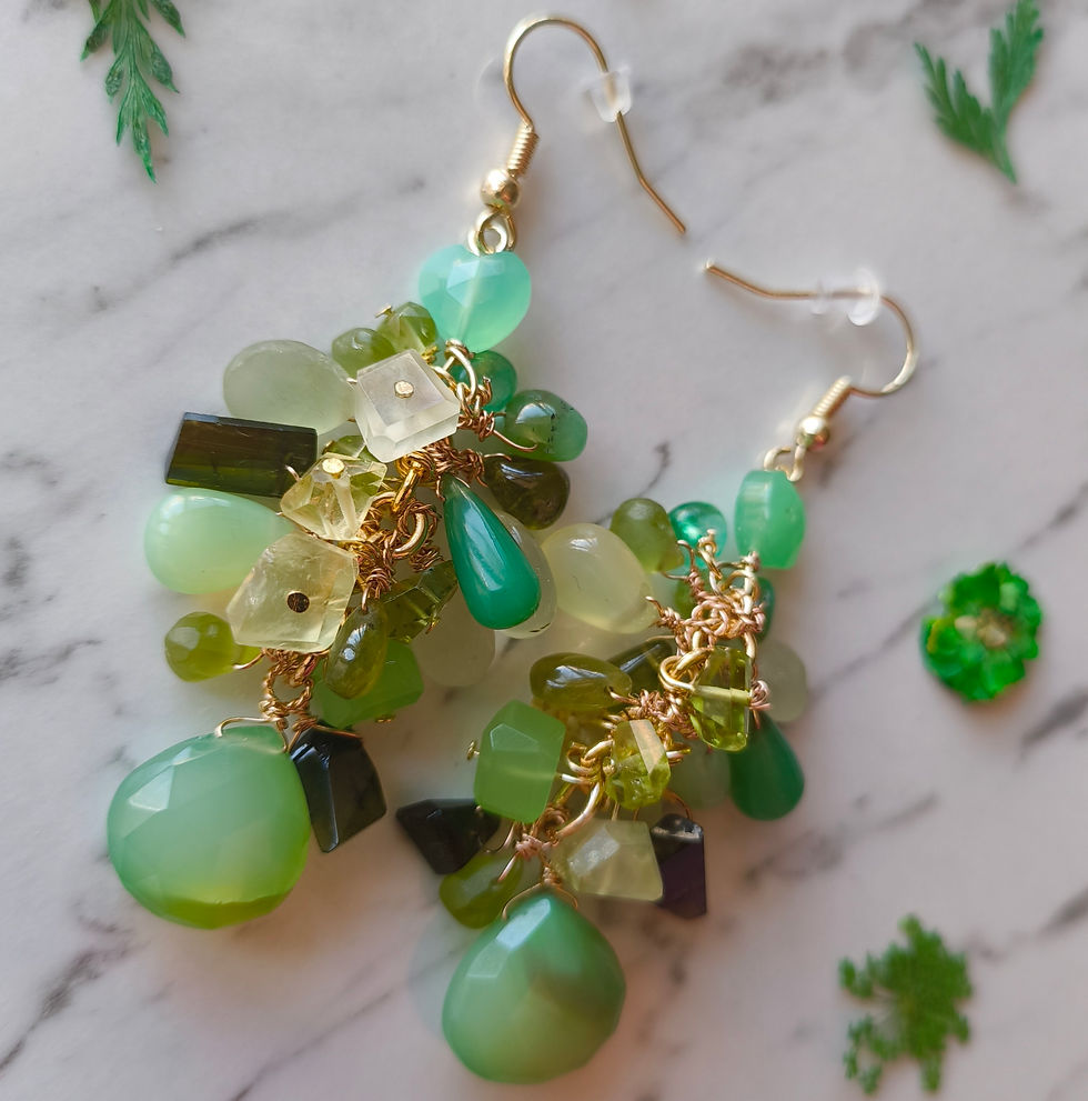 Peridot, Prehnite, Chrysoprase ,Tourmaline, Chalcedony Earrings, Gold Filled